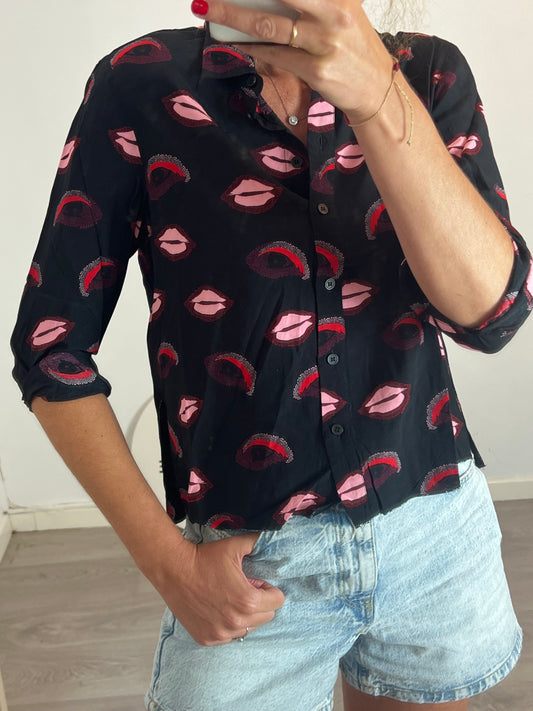 MASSIMO DUTTI. Jersey blanco rayas detalle botones. T S