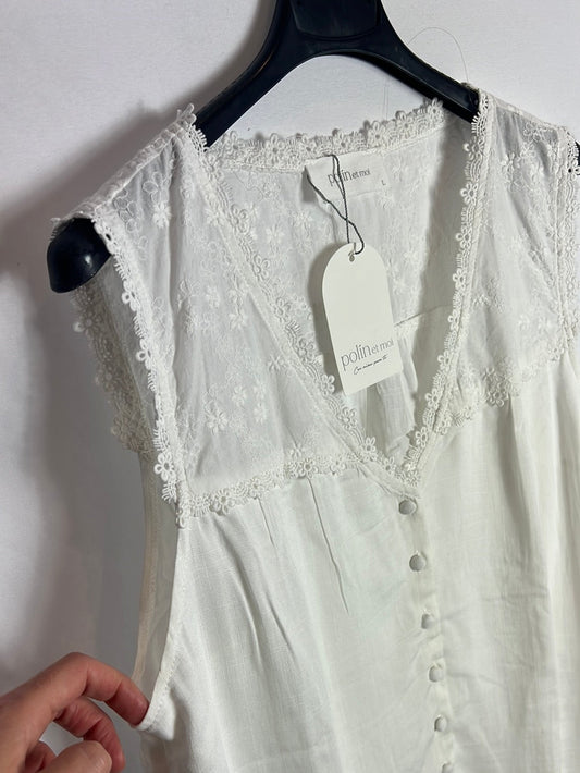 POLÍN ET MOI. Embroidered sleeveless fluid blouse. T.L.