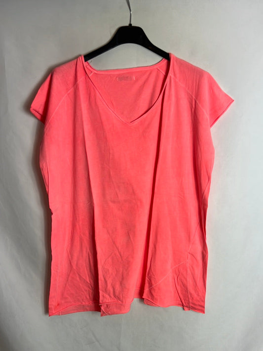 THE HIP TEE. Fluorescent pink T-shirt with back detail. TM
