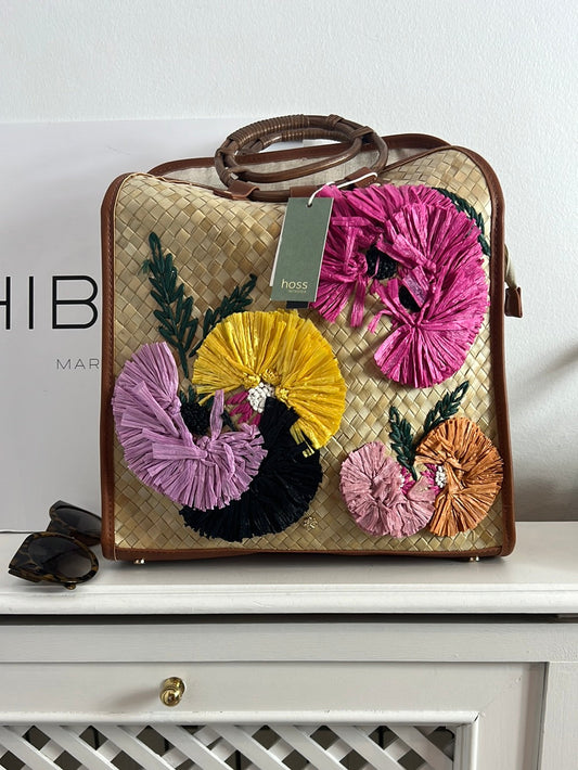 INTROPIA. Raffia bag with colorful details and short handle (Tara)