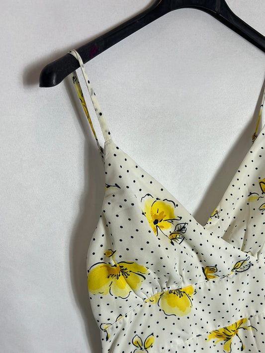ADOLFO DOMINGUEZ. White mini dress with black polka dots. Size 38