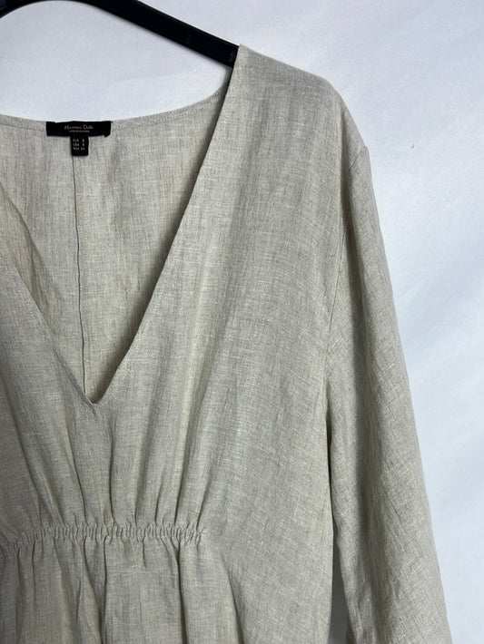 MASSIMO DUTTI. Green linen halterneck midi dress. TM