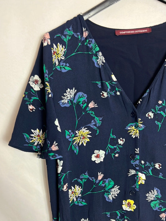COMPTOIR DES COTONNIERS. Blue floral buttoned midi dress. T Xs