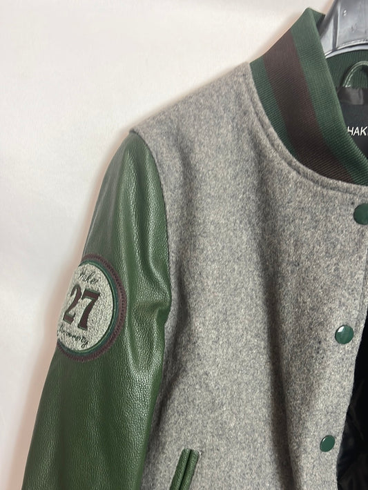 HAKEI. Two-tone bomber jacket with leather sleeves. TM