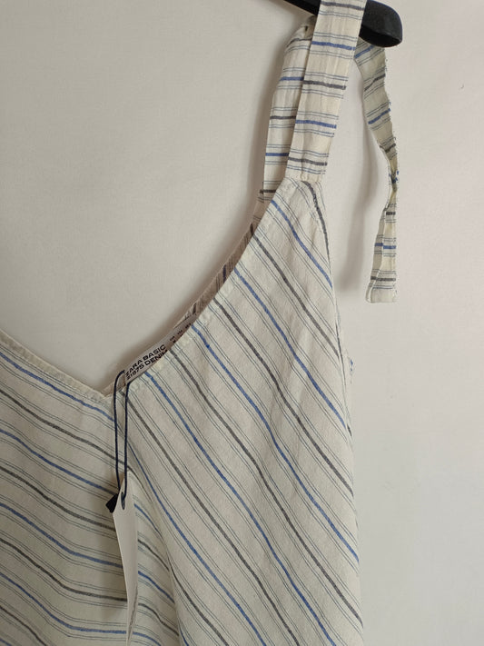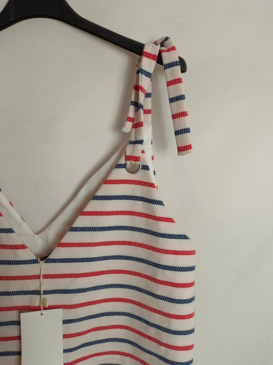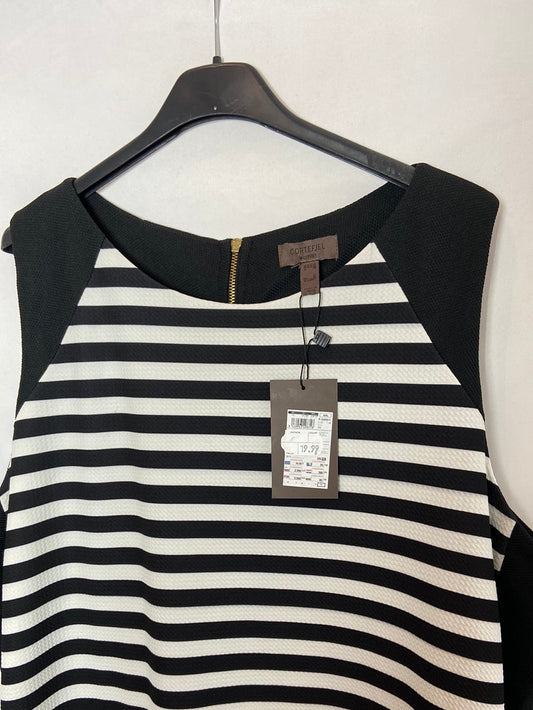 CORTEFIEL. Black sleeveless dress with white stripes, size XXL