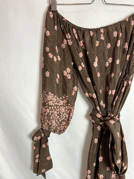 PAUL&JOE. Brown printed asymmetrical silk dress. Size 38