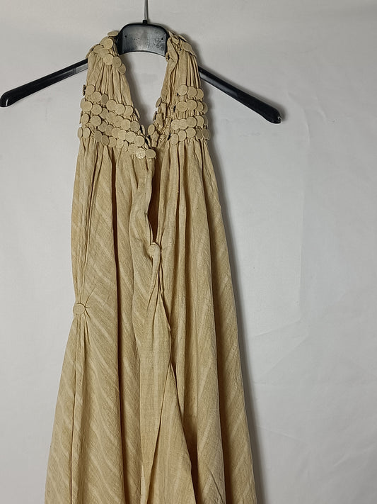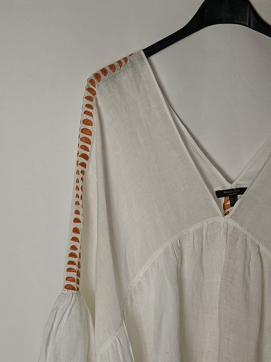 MASSIMO DUTTI. Blusa lino semitransparente bordados. T S