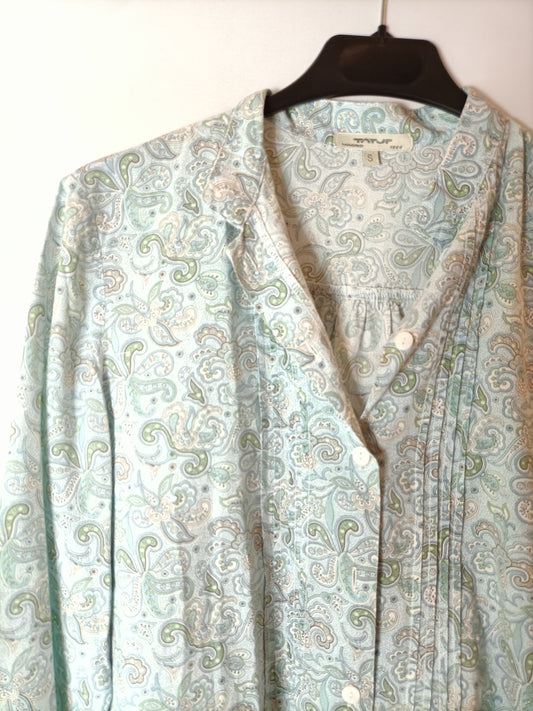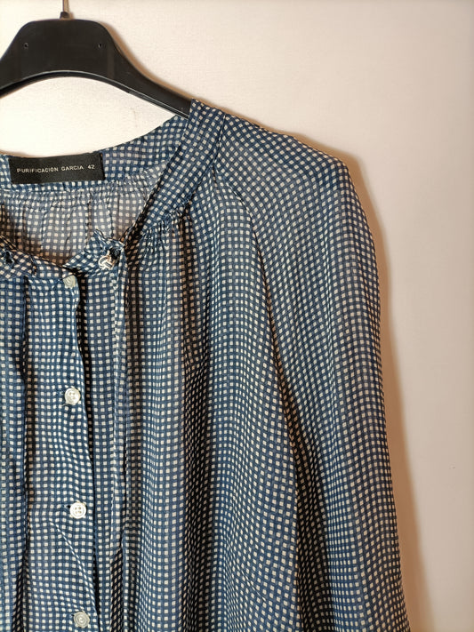 PURIFICACIÓN GARCIA. Blue and white semi-sheer blouse. Size 42 (M)