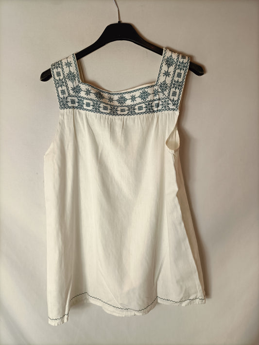 MASSIMO DUTTI. White top with cross-stitch detail. TM