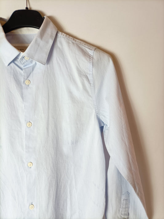 OTHERS. Light blue striped jumpsuit with ruffles. Size 8-10 years
