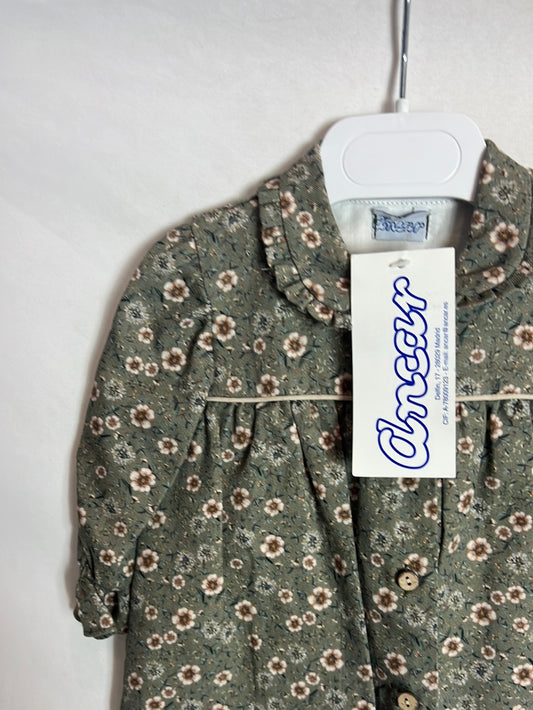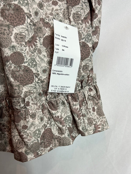 ANCAR. Rubberized dress with floral bib. Size 5 years