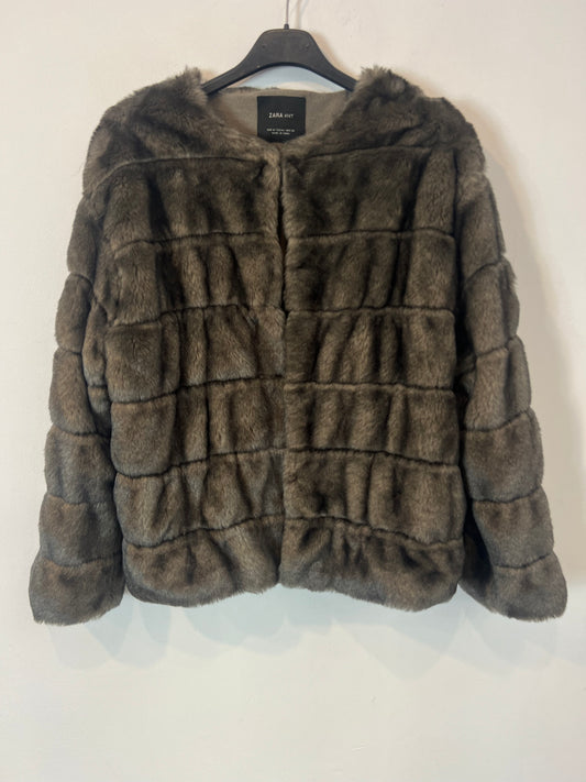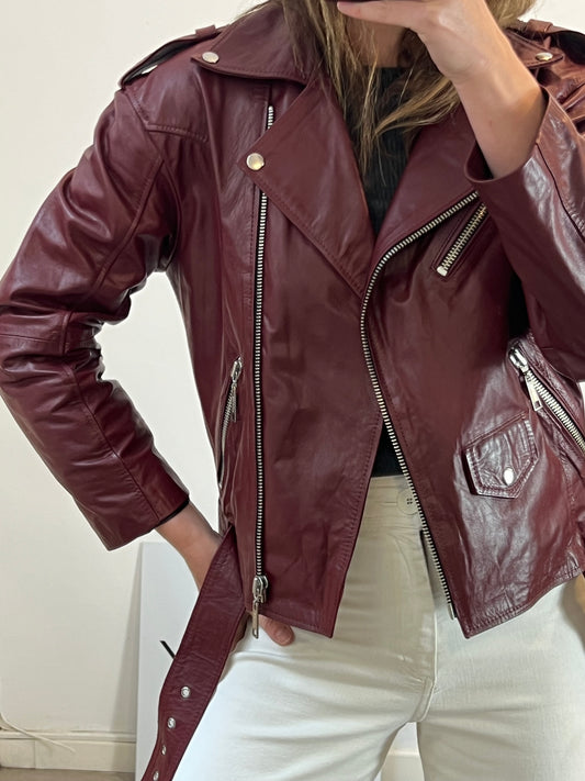 SEXY WOMAN. Green leather jacket with a fur collar. TS