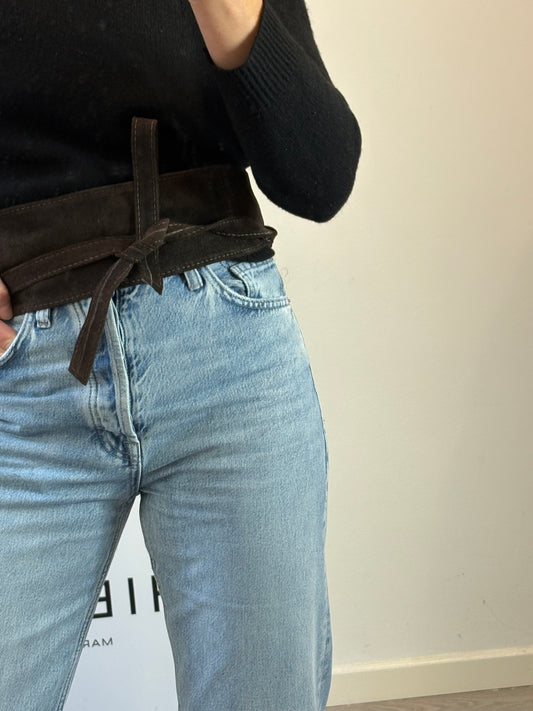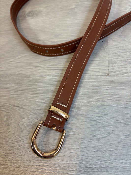 DOROTHEE SCHUMACHER. Leather belt with gold buckle. Size 75