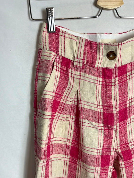 SÉZANE. Pantalón textura cuadros beige y rosa. T 36