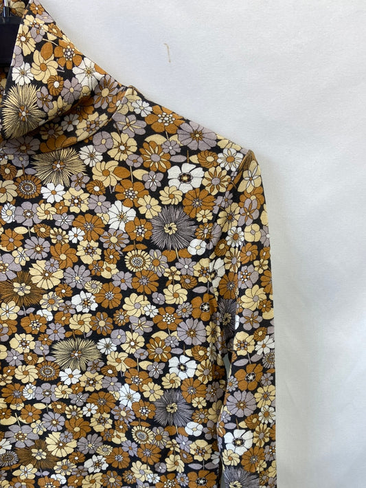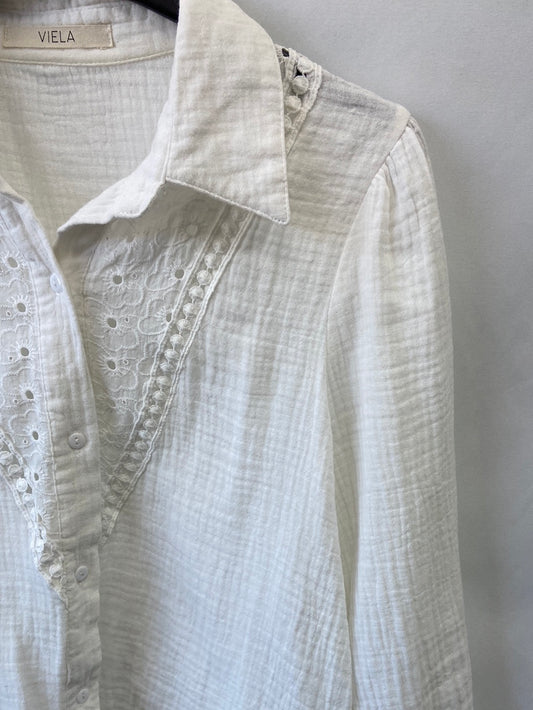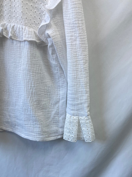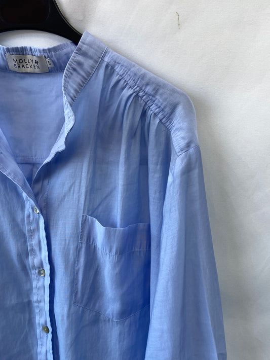 MOLLY BRACKEN. Classic blue shirt with mandarin collar, size S