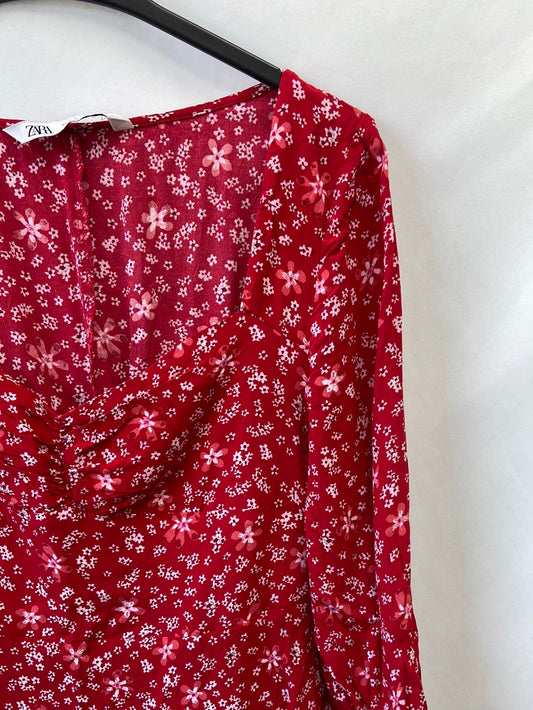 ZARA. Striped blouse with belt and puffed sleeves TS
