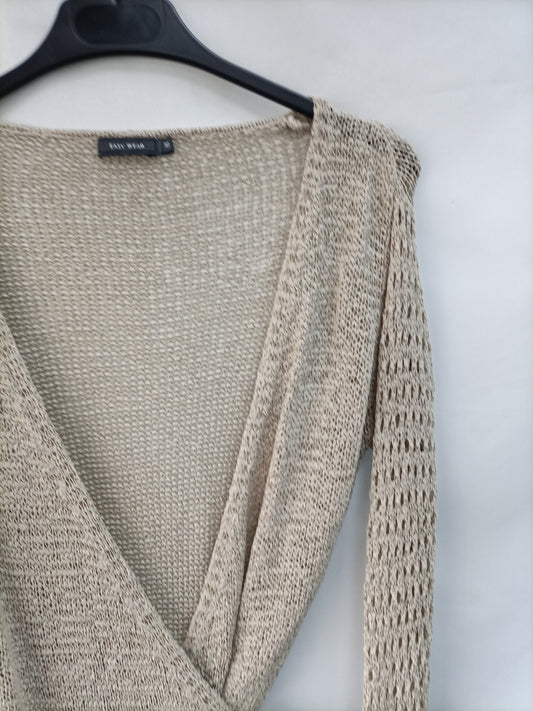 MOLLY BRACKEN. Salmon cardigan with beige collar, size S