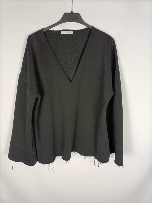 SAFRI.Fine black trench coat with gathered shoulders TL/XL