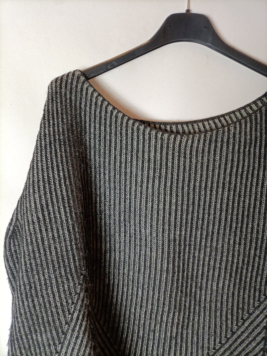 PULL&BEAR. Black and blue heathered sweater with slits. TS