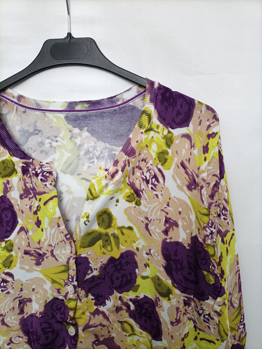 RED ROSE. Total look with a green leaf-print skirt and jacket, size 40.