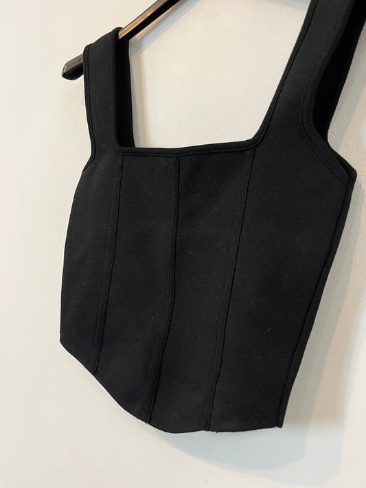 MASSIMO DUTTI. Striped ribbed top with shoulder detail. TS
