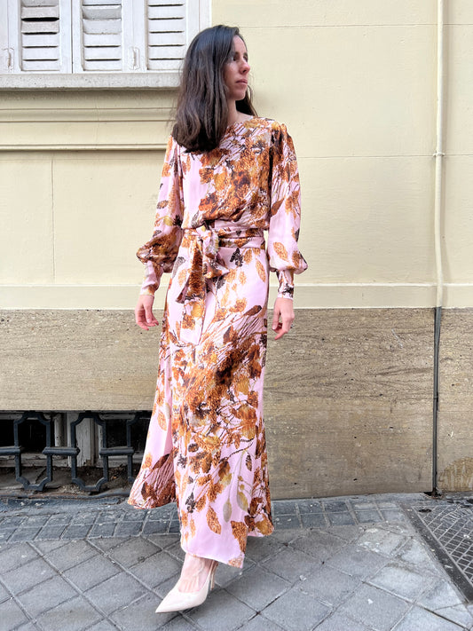 Vestido largo estampado mangas gasa