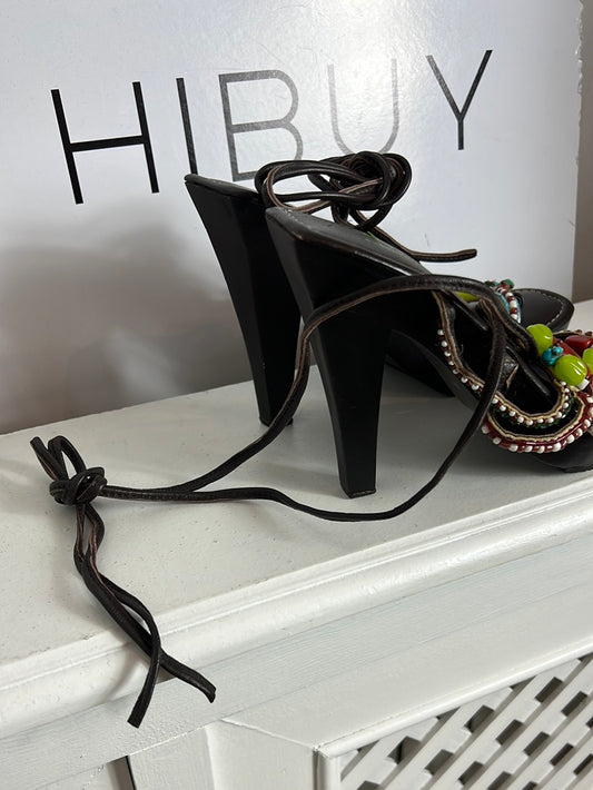 ESSENCE SANDAL. Brown sandal with colorful rhinestone details. Size 39