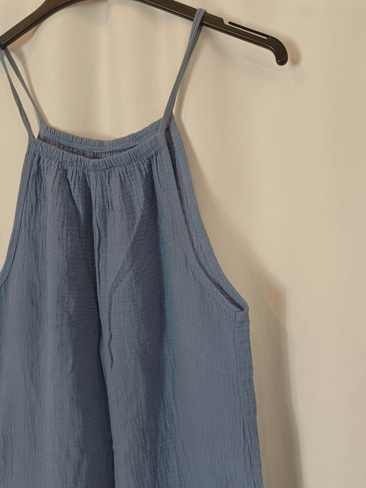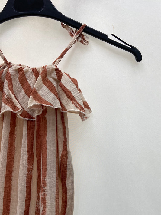 OTHERS. Light blue striped jumpsuit with ruffles. Size 8-10 years