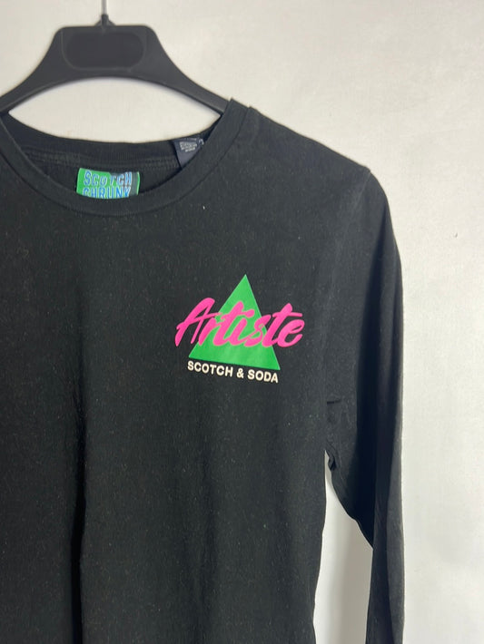 SCOTCH&SODA. Black long-sleeved lettering T-shirt. XS/S