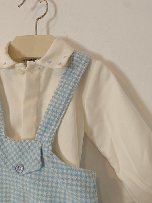 LITTLE KING. Blue blouse and romper set, size 6 months