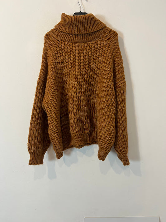 STRADIVARIUS. Jersey cuello vuelto marrón jaspeado. T L