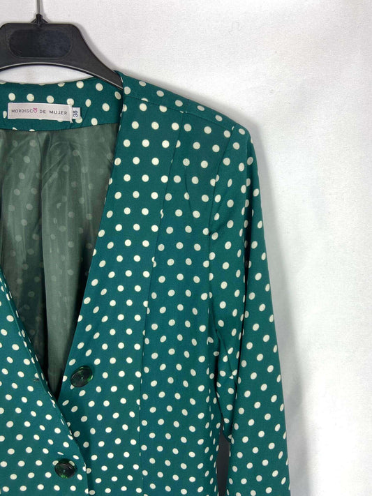 WOMAN'S BITE. Total blazer look and flowing green polka dot pants, size 38.