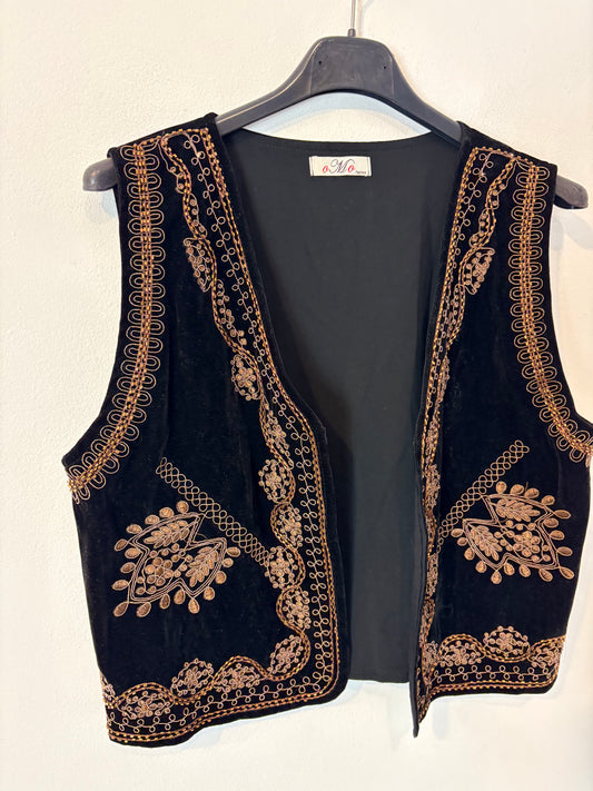 OTRAS. Chaleco azul bordado colores
