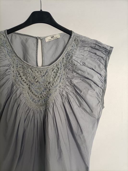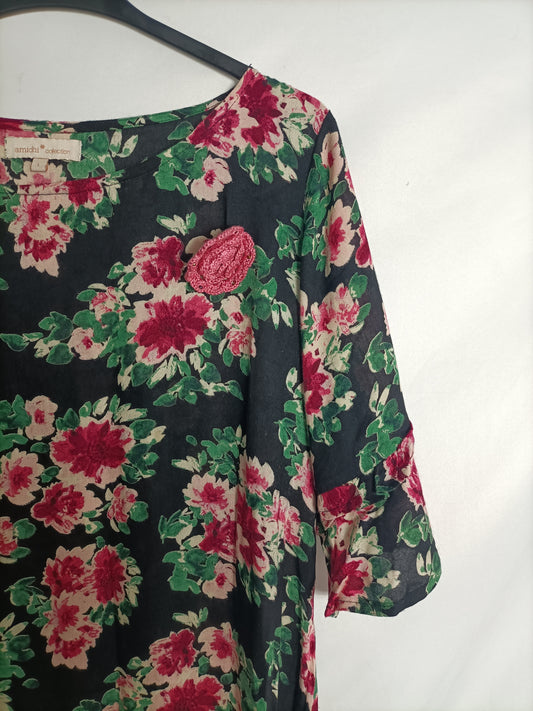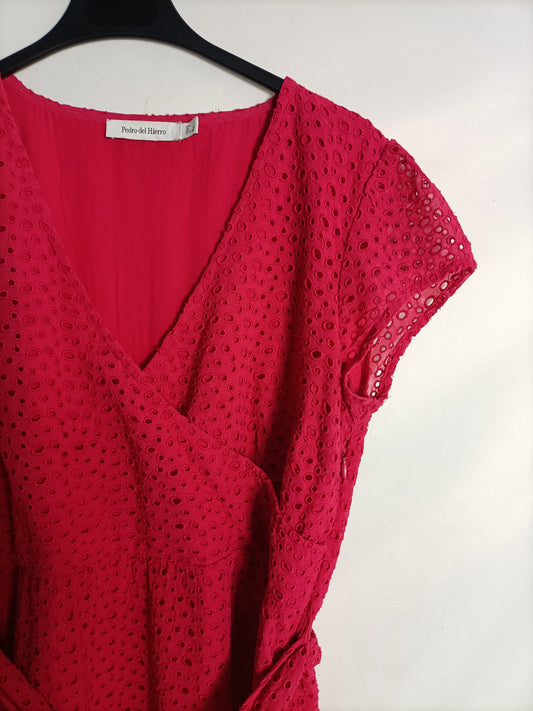PEDRO DEL HIERRO. Blue jeans with floral detail, size 44