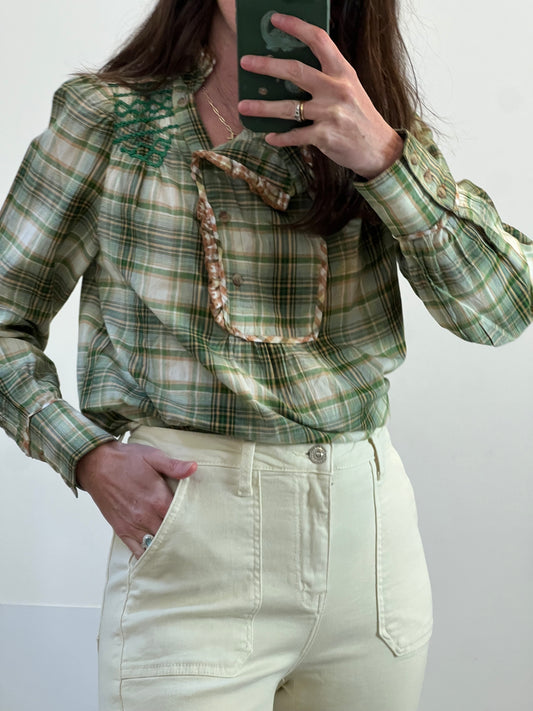 SEZANE. Semi-sheer white shirt with embroidered flowers. Size 36