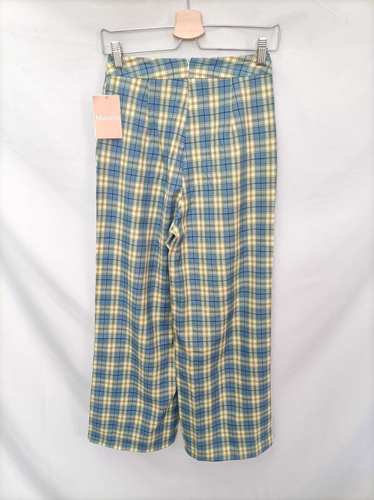 MARINA RIVERO. Birds-eye blue sleeveless blouse. Size 42