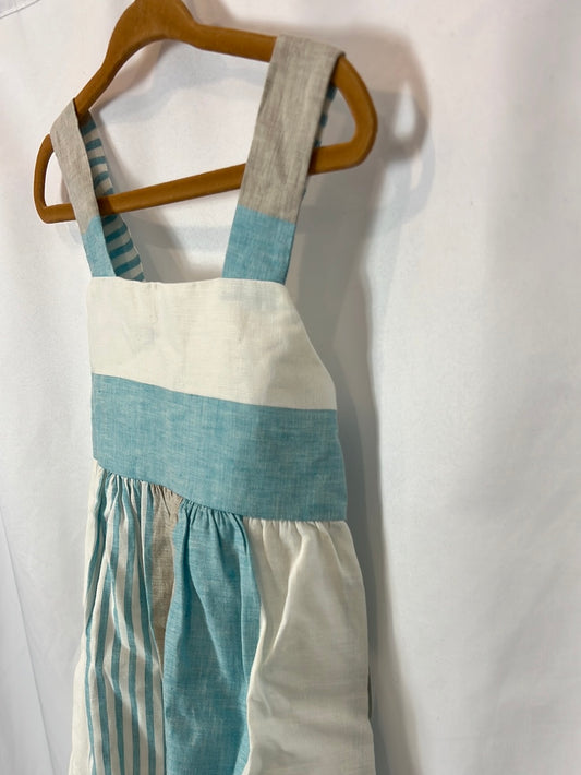 NEWNESS. White linen dress with blue embroidery. Size 7 years.