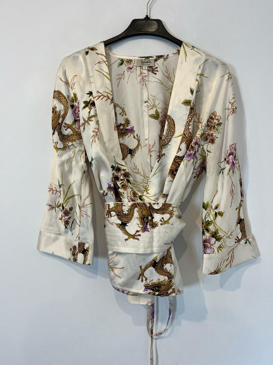 100% Capri. Linen blouse with neck and sleeve detail. TL