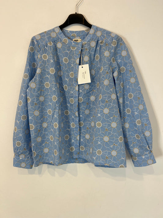 ALOHA TATA. Light denim blouse with flower detail. TM