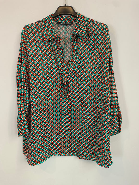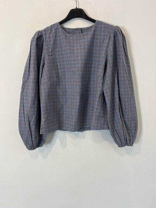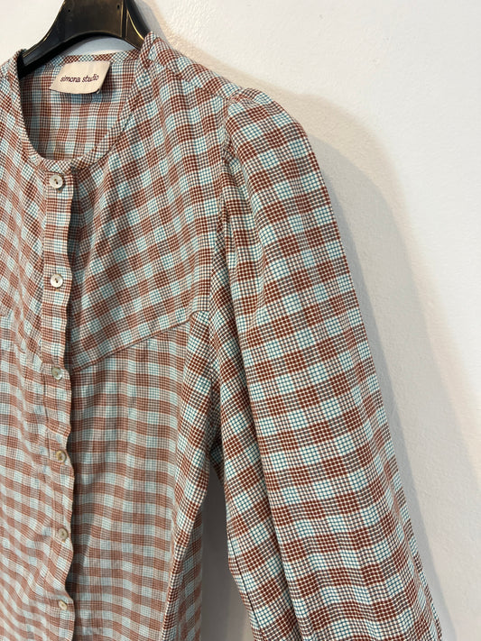 SIMONA STUDIO. Blue and brown checked blouse, size 36