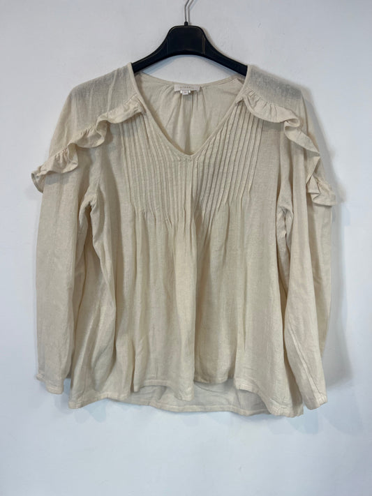 SCALPERS. White textured shirt with adjustable waist. Size XS