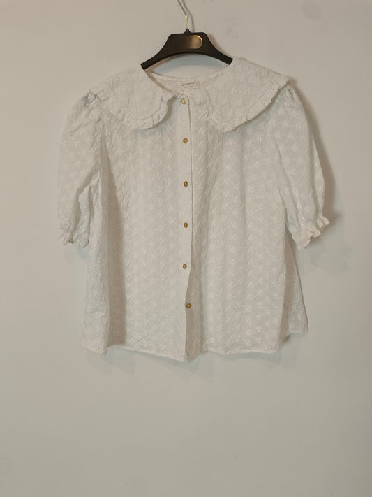 DES PETITS HAUTS. Blusa beige plumeti naranjas T.1(s)