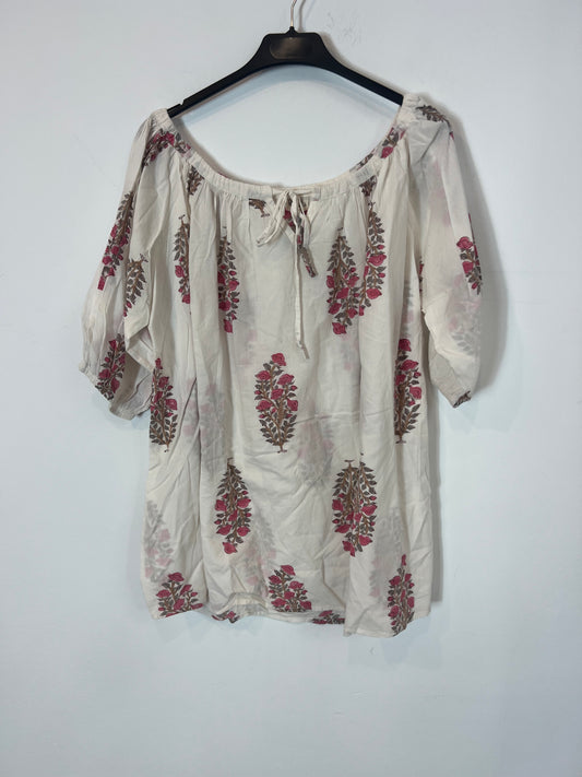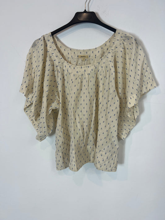 BELLEROSE. Beige blouse with blue embroidery S.1(s)