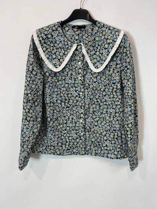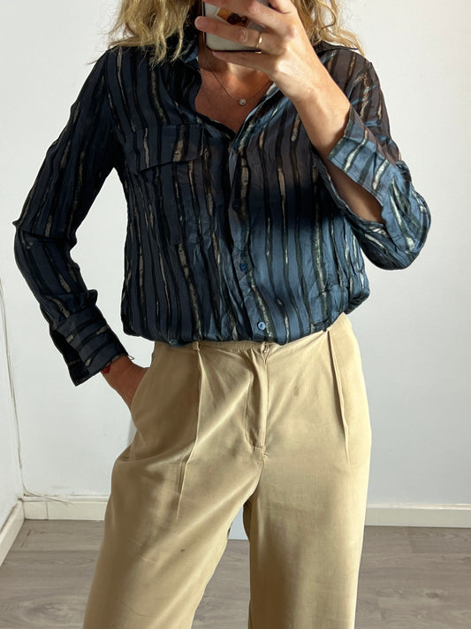 MASSIMO DUTTI. Blue and gray printed blouse, size 38