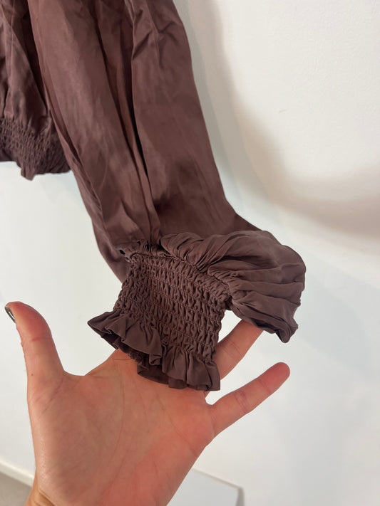 MASSIMO DUTTI. Beige blouse with gathered neckline. TS