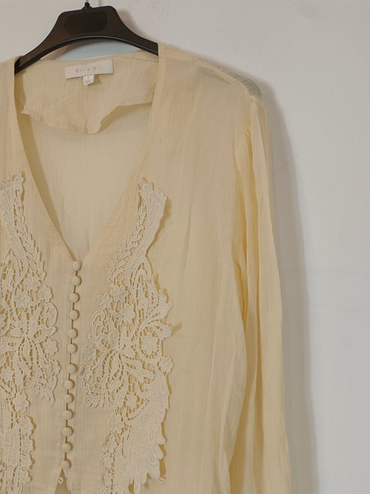 TEN TWELVE. Beige blouse with embroidered collar detail S.0 (xs/s)