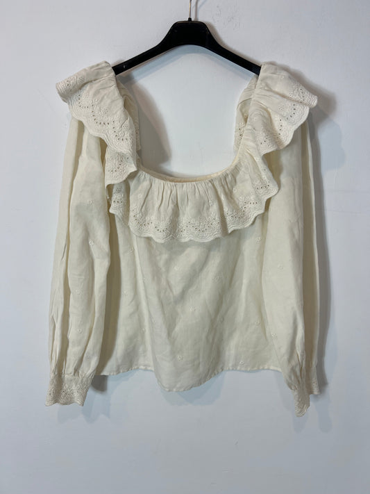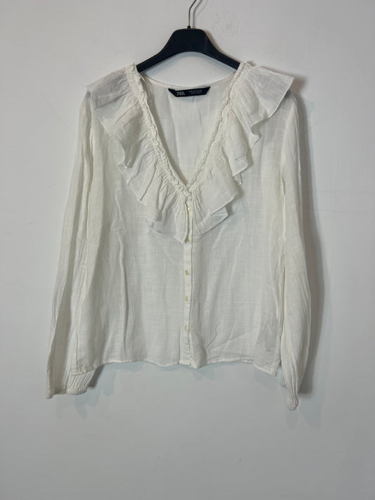 INTROPIA. White blouse with die-cut ruffles, size 38