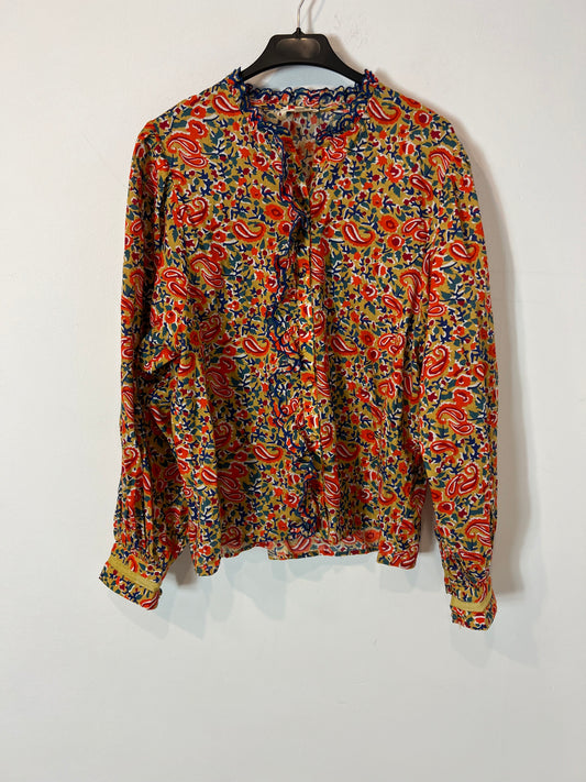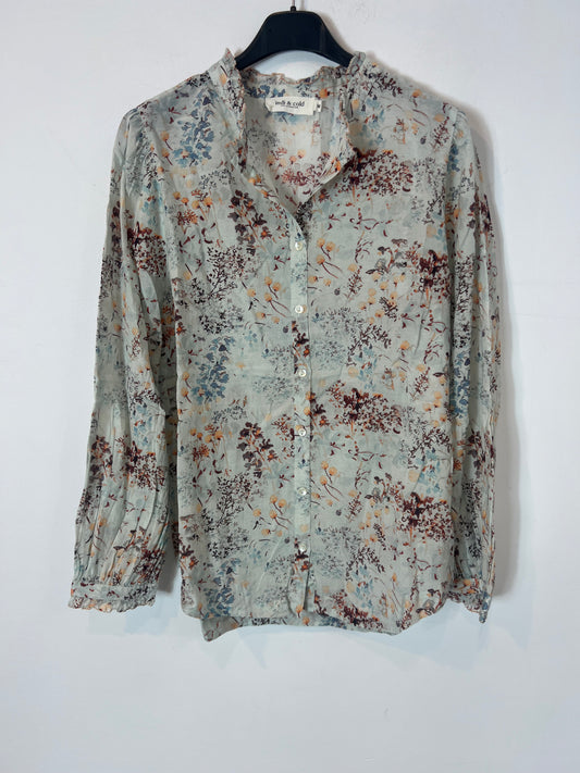 INDI & COLD. Flowy floral blouse with ruffled collar. TM