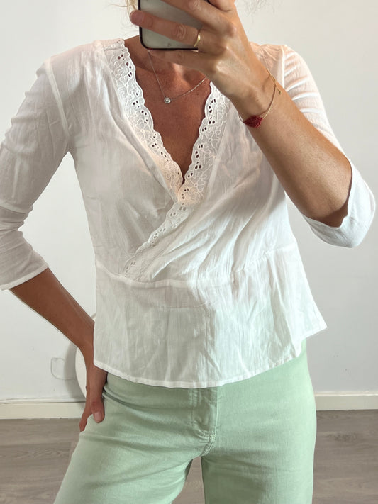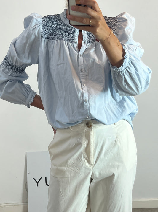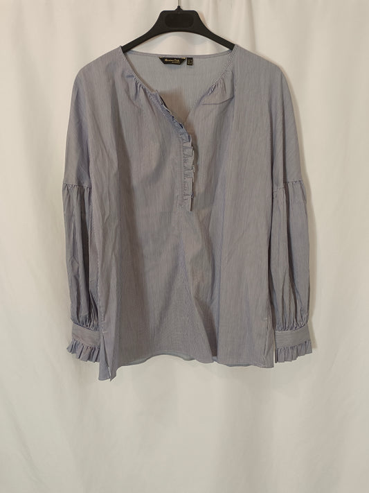 MASSIMO DUTTI. Blue and white striped blouse, size 38