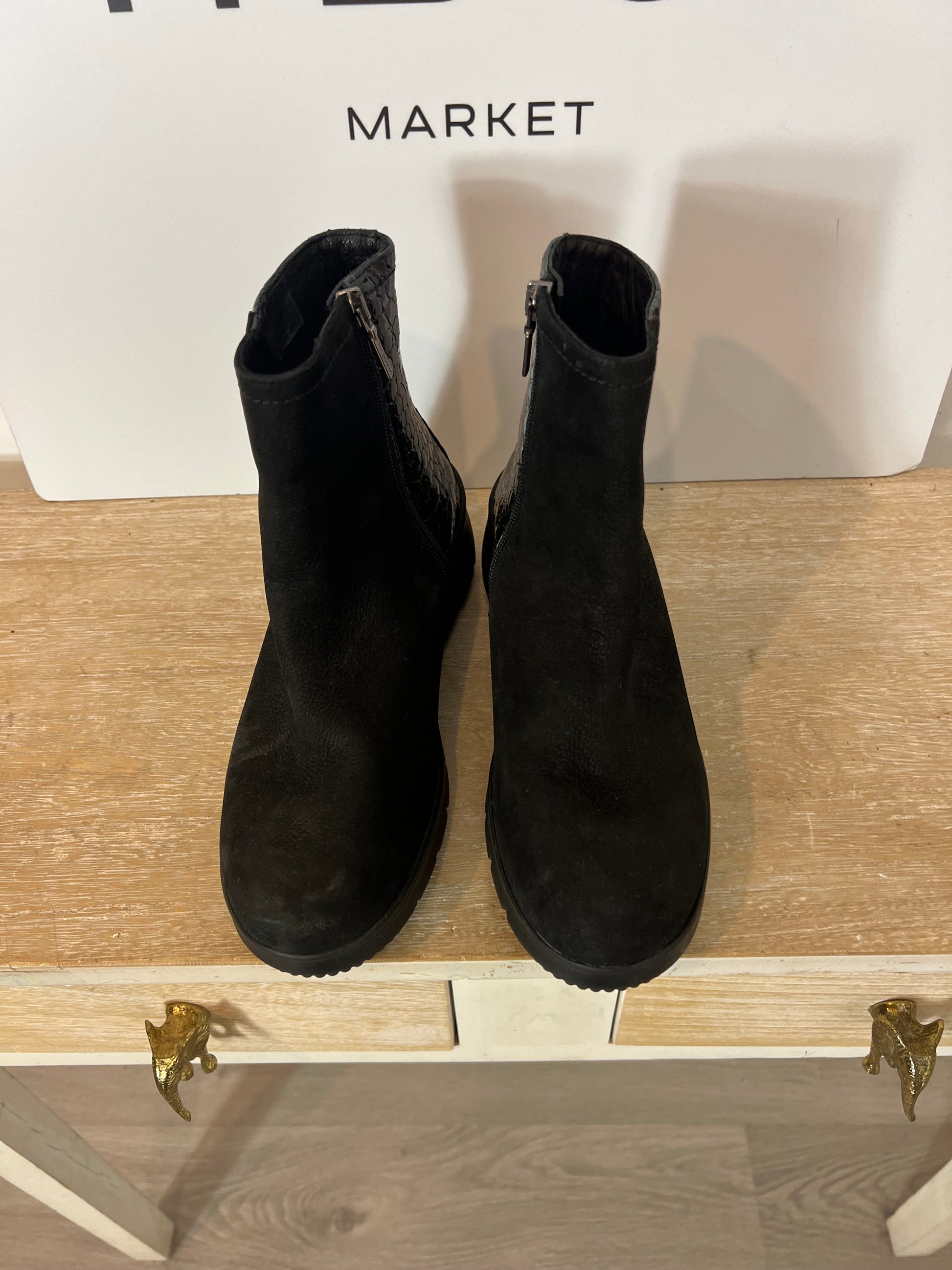 Botas negras con doble textura y cremallera. Tacón 6 cm plataforma 2 cm